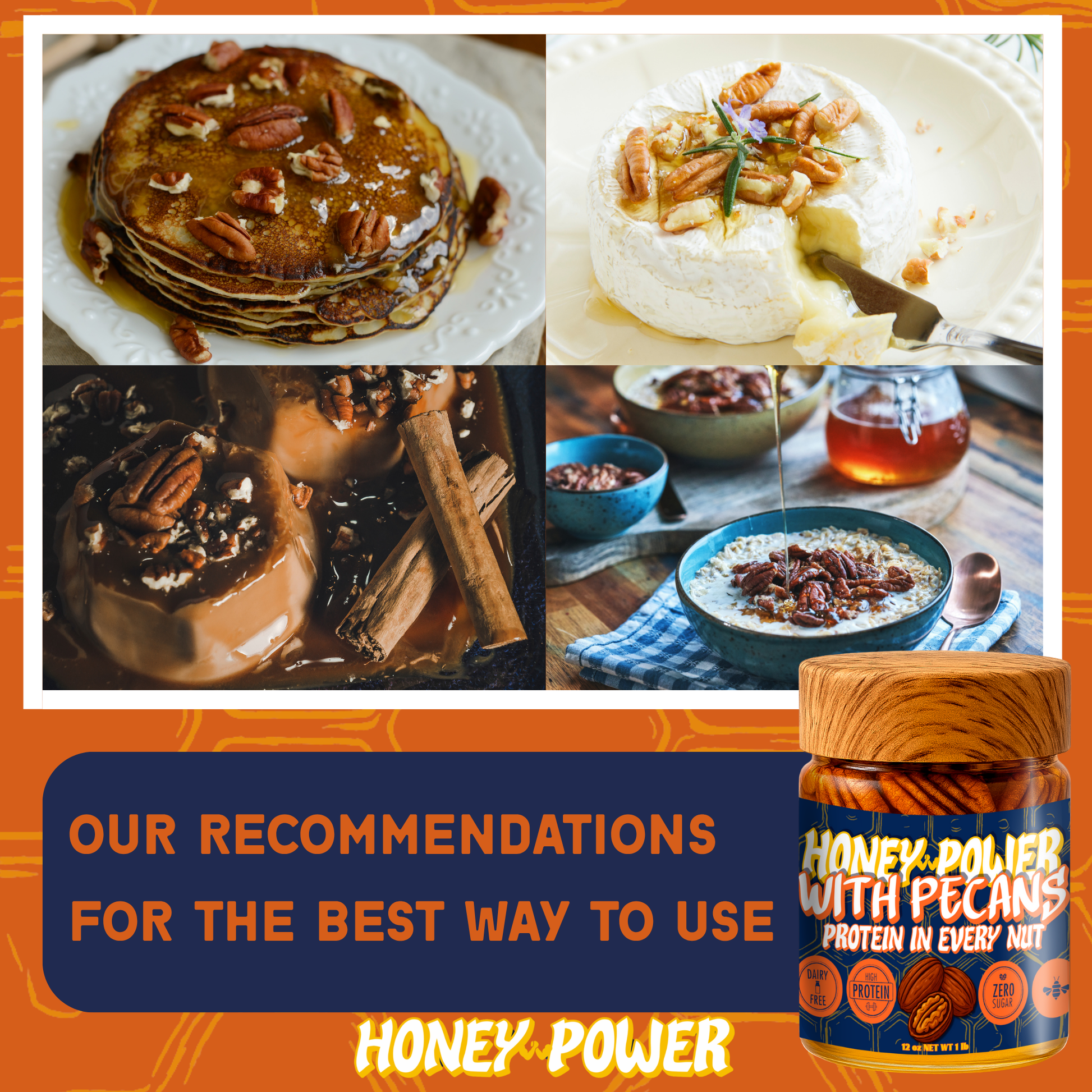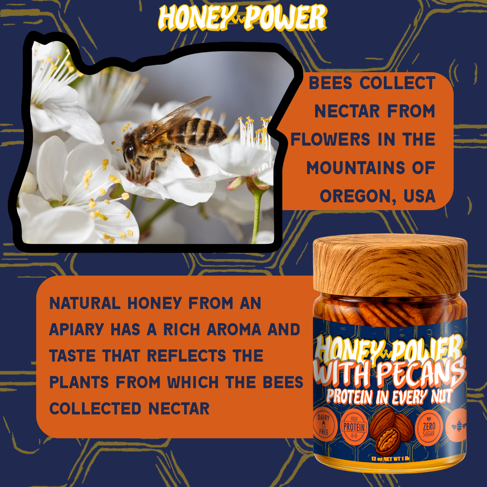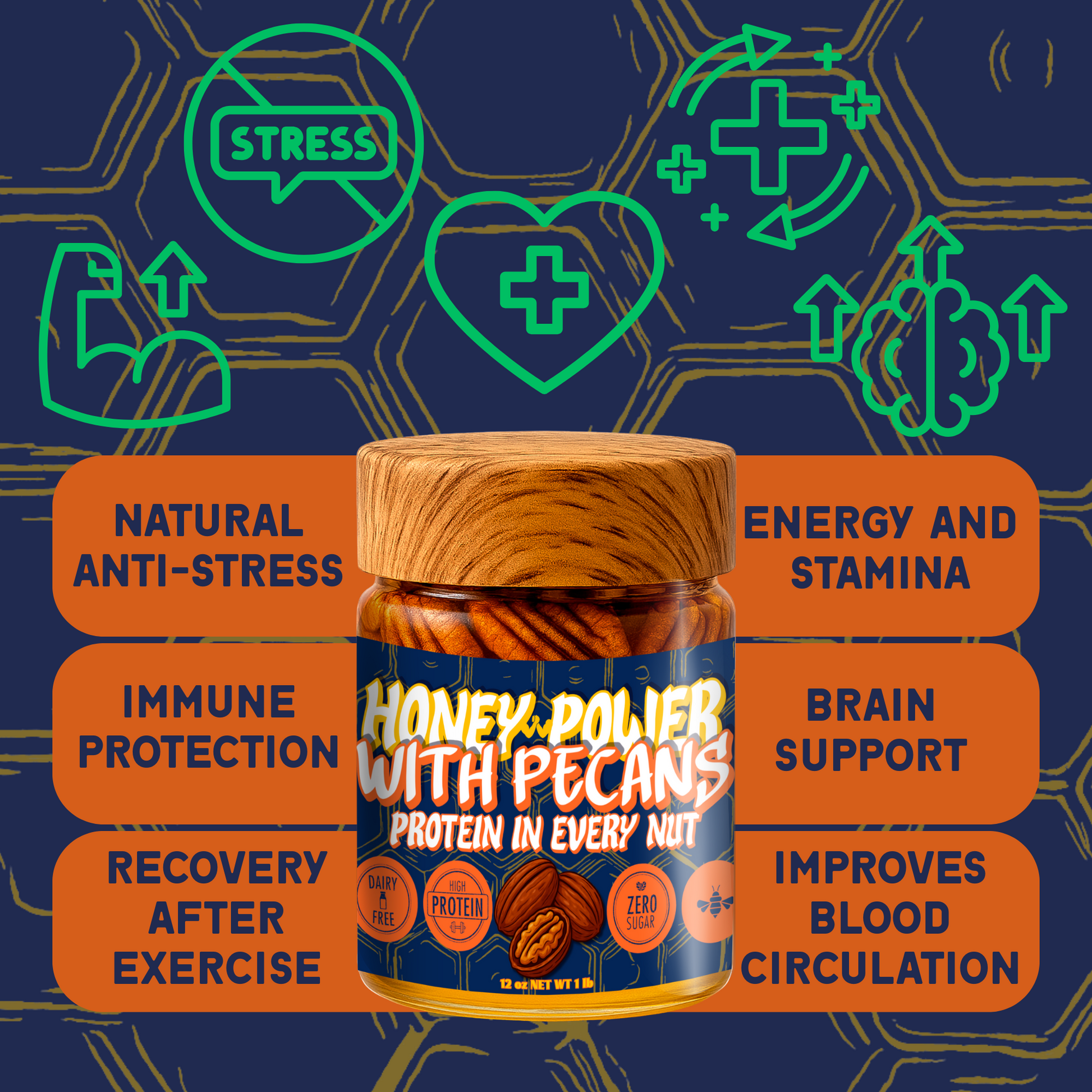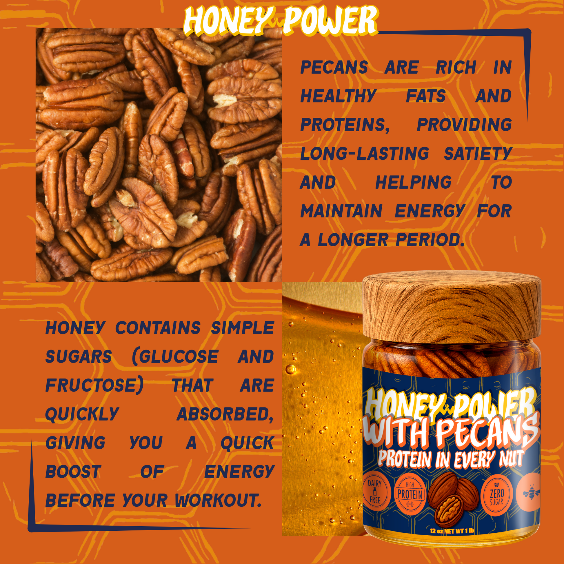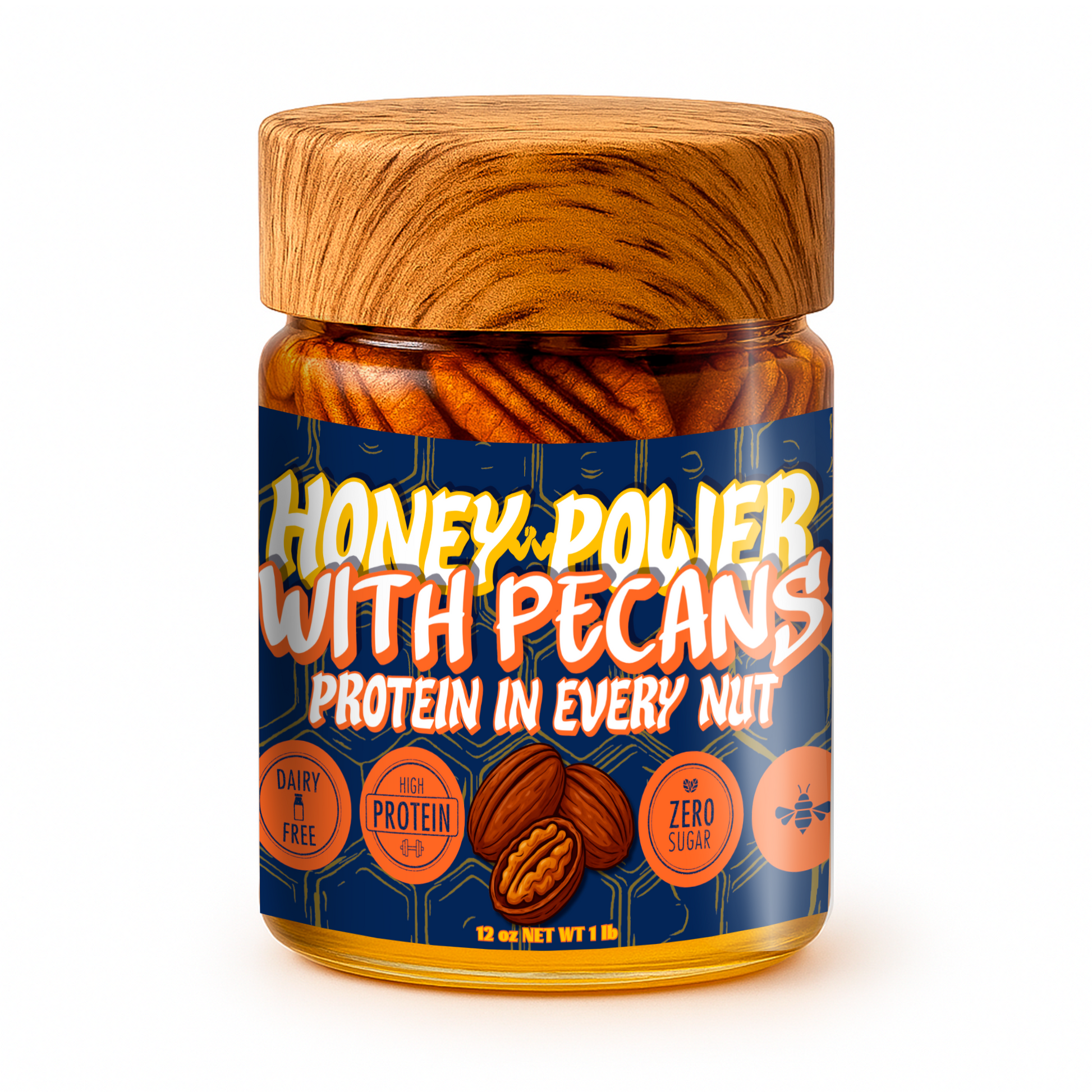Honey Power with Pecans - Natural Honey | Protein in Every Nut | Energy Boost for Gym | Fitness Recovery Food | Muscle Support | No Added Sugar | Gluten-Free | 12 oz